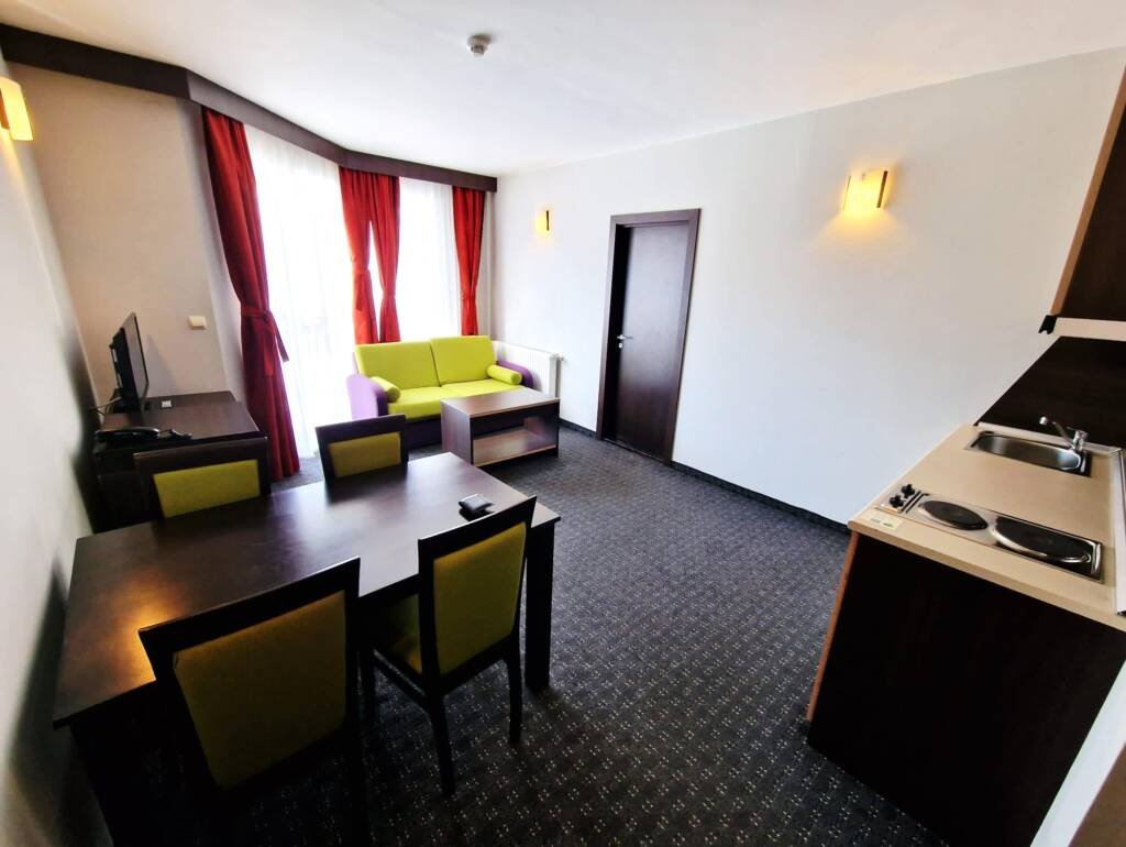 Welcome to our cozy apartment located in the 4-star MPM Guinness Hotel, just 400 meters from the main ski gondola and a short walk from the charming center of Bansko. Nestled at the foot of the Pirin Mountains – a UNESCO World Heritage Site – this is the perfect place for both winter ski adventures and summer mountain escapes.